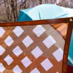 厚手のコットン製で、さらにランタンハンガー、焚き火ハンガーを兼ねているので小さくても重量はそれなり。ローチェアに座ると、肩くらいまでの高さとなり、冬は背中の風を遮るのにもよさそうです。