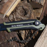 OLFAが新たに展開を開始したのは「OLFA WORKS」シリーズ。現在展開しているのは、フィールドノコギリ、ブッシュクラフトナイフ、フィールドナイフの3種類。いずれも替刃式で、カラーは気分が盛り上がるオリーブドラブとサンドベージュの2色展開です。