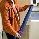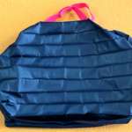 バッグの状態では大容量で使いやすいのですが、両端についたテープ部分を引っ張ると一瞬でバッグが帯状にまとまるんです。