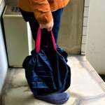 さらに、荷物を入れるとバッグの中身が見えないというのも特徴です。袋詰めの時は大きく開いてくれるのですが、荷物を入れて手に持つと重みで巾着のように口を絞る設計になっています。
