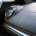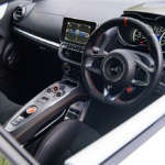 A110Sは、ひと足先に登場したA110の高性能版という位置づけ。とはいえA110との外観の違いは控えめで、目立つ識別ポイントはグレーに塗られたFUCHS製の18インチホイールとオレンジのブレーキキャリパー、樹脂製ルーフより1.6kg軽いカーボンルーフといった程度。一方、約50%固められたサスペンション、40馬力アップの292馬力を発生するエンジン、前後とも10mmワイドなタイヤなど、性能にまつわる部分には惜しみなく手が入れられている。