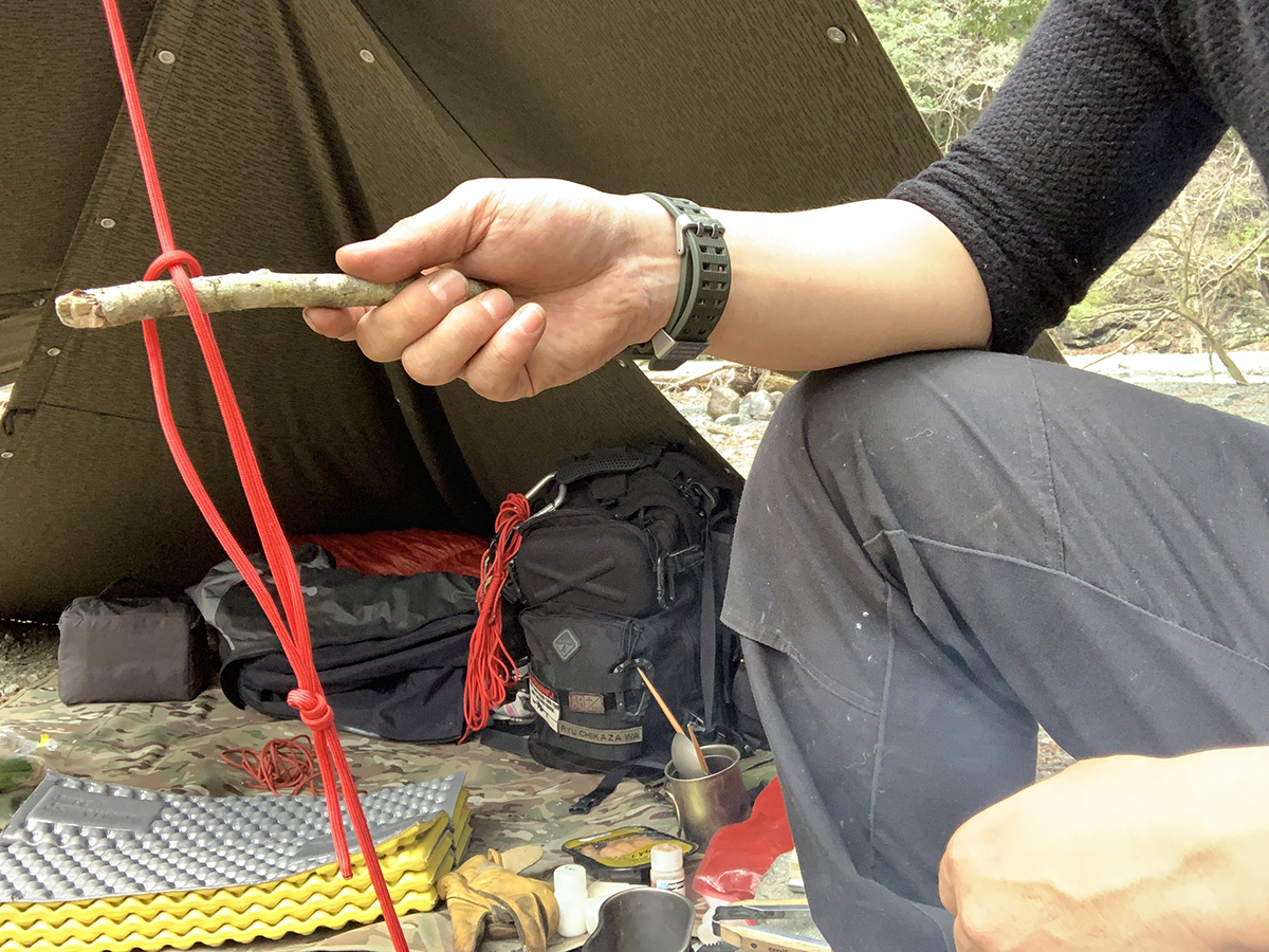 ロープでクッカーを上下させて火加減調整【ロープワーク応用編】 の写真・画像 10/13