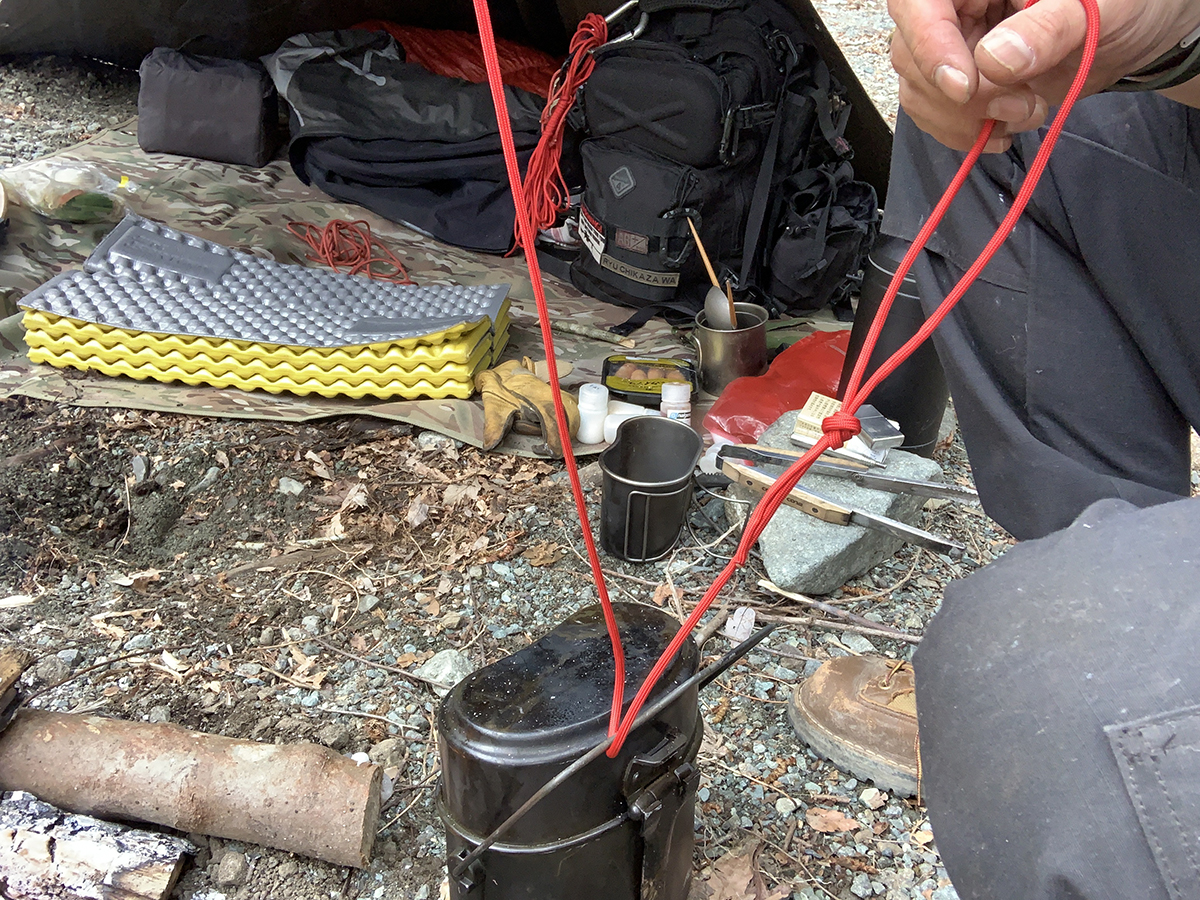 ロープでクッカーを上下させて火加減調整【ロープワーク応用編】 の写真・画像 7/13