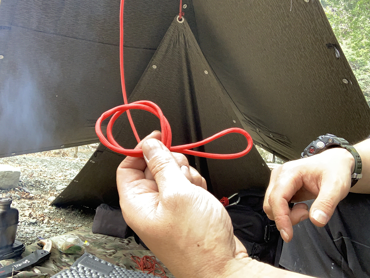 ロープでクッカーを上下させて火加減調整【ロープワーク応用編】 の写真・画像 4/13