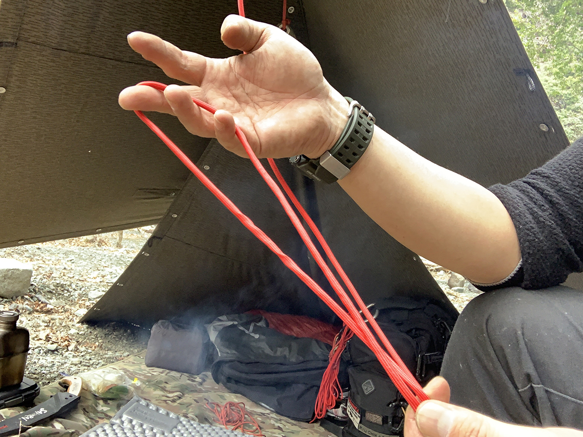 ロープでクッカーを上下させて火加減調整【ロープワーク応用編】 の写真・画像 2/13