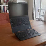 Amazonでポチッた2000円台の折り畳み式スタンドにノートPCを立て掛け、「ThinkPad トラックポイントキーボードⅡ」を接続して、テレワークスタイルが完成。こうなってすぐに首の角度が変わったことが分かりました。背中をピシッと真っ直ぐにするには、まだ意識する必要がありますが、首が下を向いていない効果は絶大です。首が真っ直ぐ立つことにより、背筋を伸ばしやすくなりました。