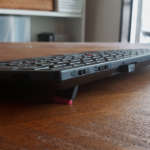 さらに背面には2つ付いています。実はこのキーボード、Androidのスマホやタブレットでも使えるので、右はそのための切り替えスイッチです。でも使うことはないかも…。左はBluetooth接続と、ドングル使用の切り替えスイッチになります。また右側面には電源スイッチが付いています。でも、それだけ。余分なものは一切付いていません。