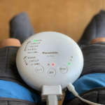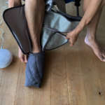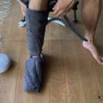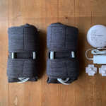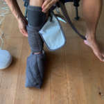 最後に太ももを巻いて終了です。ここまで1分ほど。左足も同様に巻き、ホースプラグを差し込めば、マッサージの準備はOKです!