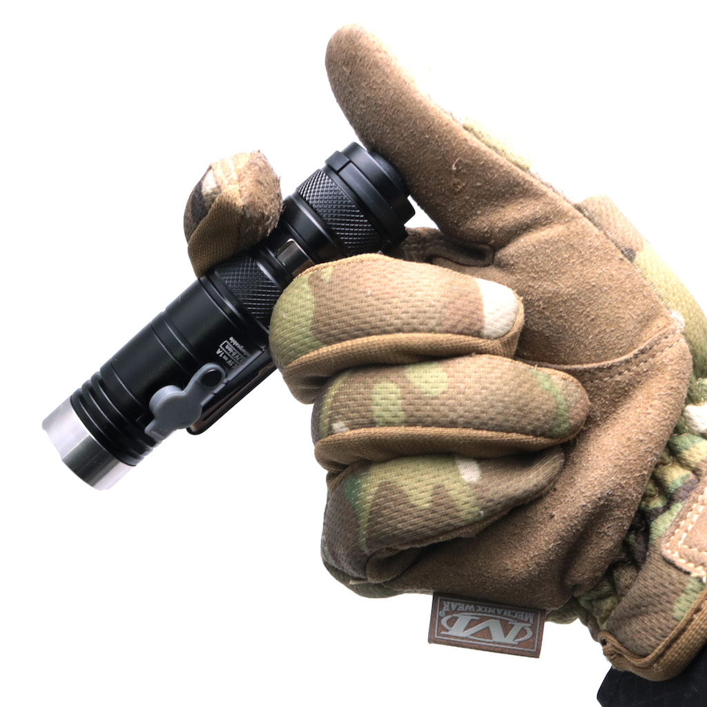 18350電池の短いライトが「DX3B」、18650電池を使用する長いライトが「DX3L」。型番の一部を変えて電池違いのバリエーションを表現するシリーズは多くありますが、18350電池をBで表現するのはちょっと珍しい。EAGTACは基本的に古典的というか、LED黎明期のタクティカルライトを彷彿させるデザインをしています。個人的にはこうしたチェッカリング面積の多いデザインは嫌いではありません。