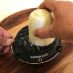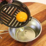 「シェラカップ調理器」は2つのパーツに分かれています。2つのパーツは重ねたときにすぐ外れることがないよう溝とポッチが付いています。