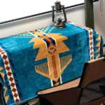 2枚目はブラウンを基調とした、いかにもネイティブアメリカンな柄。遠くから見るとレインボー風になり、落ち着いていながらも存在感のあるデザインになっている。