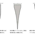 実際に削り出す前に、ナイフブレイドの種類をご紹介します。実はブレイドの断面形状には様々な種類があるのです。その中でもナイフメイキングで重要な3種類をご覧ください。これはナイフメインキングだけでなく、ブッシュクラフト に使用するナイフを選ぶときの参考にもなると思います。