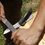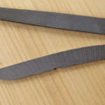 外側のラインを、目指すナイフの形になるように整えることに成功すれば、続いていよいよナイフの「刃」の整形が始まります。