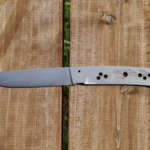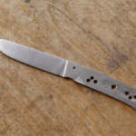 ちなみに私のナイフは、目印の位置を間違えたり、削り過ぎをカバーするために大きさが変わったりで、穴だらけ(涙)。でもハンドルで見えなくなるから良しとします。