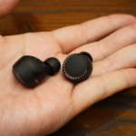 外見はマットな黒。片側の実測値が約6.5gでやや背が高く、装着時の耳元は少し目立ちます。IPX4で防滴にも対応。イヤーピースはS/M/L/XLが付属しています。