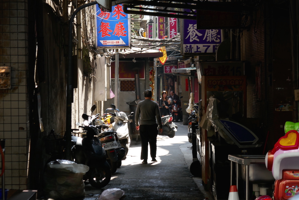 龍山寺から通りを挟んだ一帯を歩いてみたが、裏通りを覗くと、風情と反比例して不穏さが漂っていた(TX1)