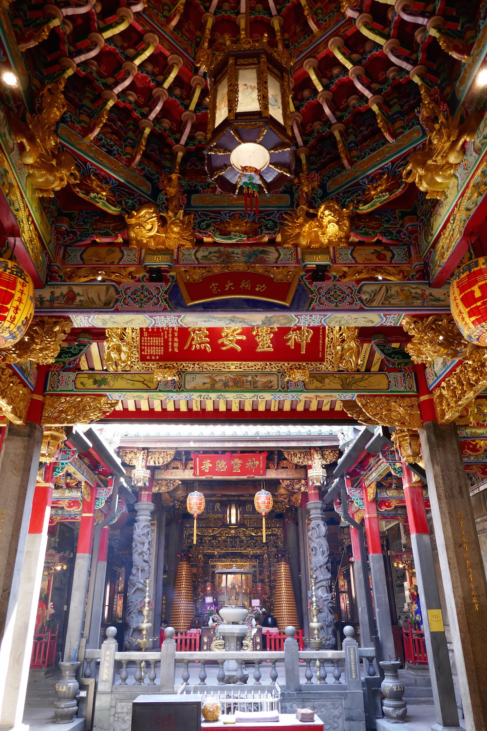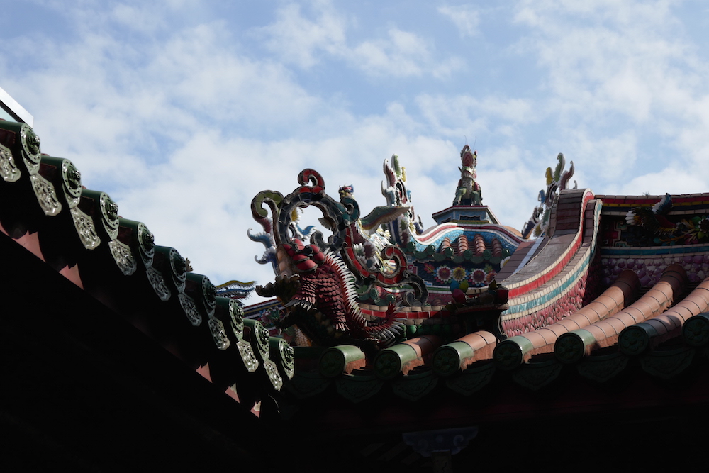 この青山宮が、中華圏で初めて訪れた寺院。建物の隅々まで彫刻が彫られていて、彩色がほどこされていることに驚いた。まさに京劇の世界に来たようだ(TX1)