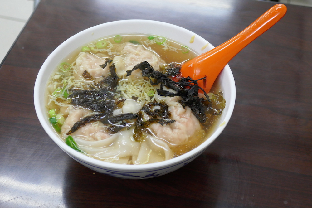 ぶらりと入った店「温州大饂飩」の蛯入りワンタン。目的の店が閉まっていたため、テキトーに入った店だったが、このワンタンは美味しかった(TX1)