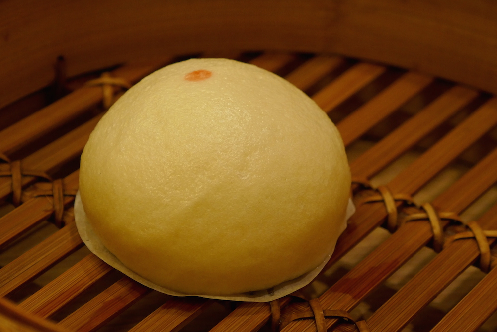 同じく「鼎泰豐」の餡饅。造形がキレイ! 味は……とろりとした漉し餡が甘くて美味しいのだけれど、けっこう日本のコンビニも負けていないな、と思ってしまった(TX1)