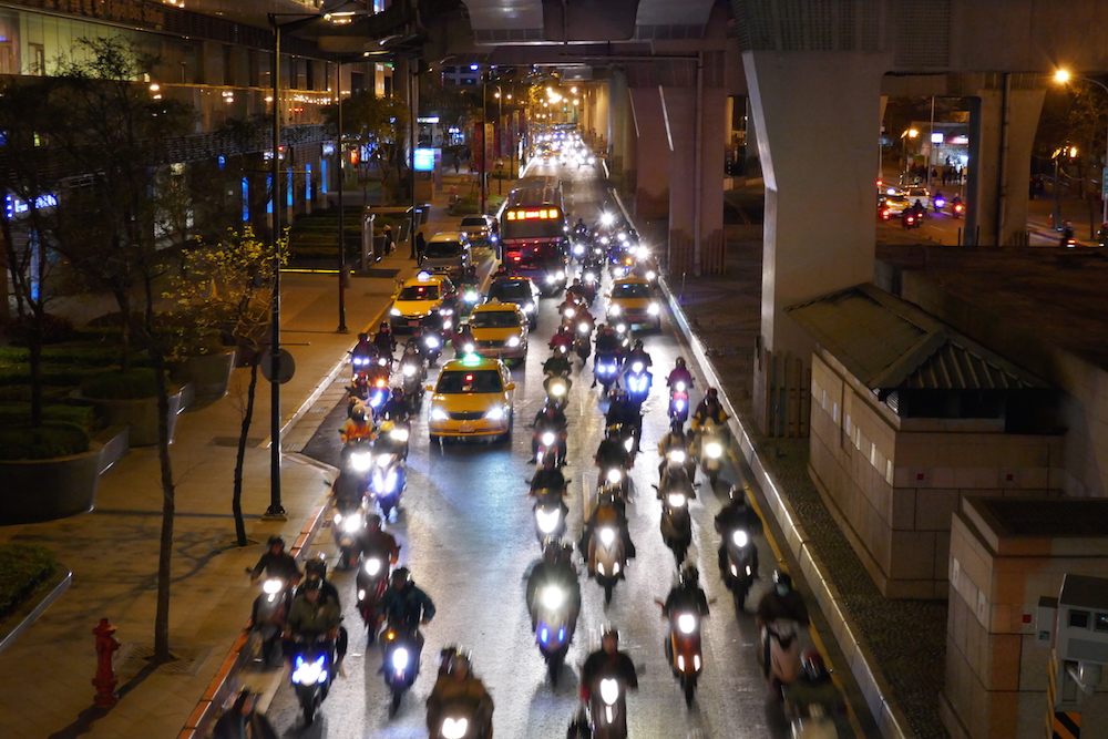 台北は、とにかくバイクが多かった。信号待ちの時にはバイクが最前列に並び、青になると一気に飛び出す感じ(TX1)