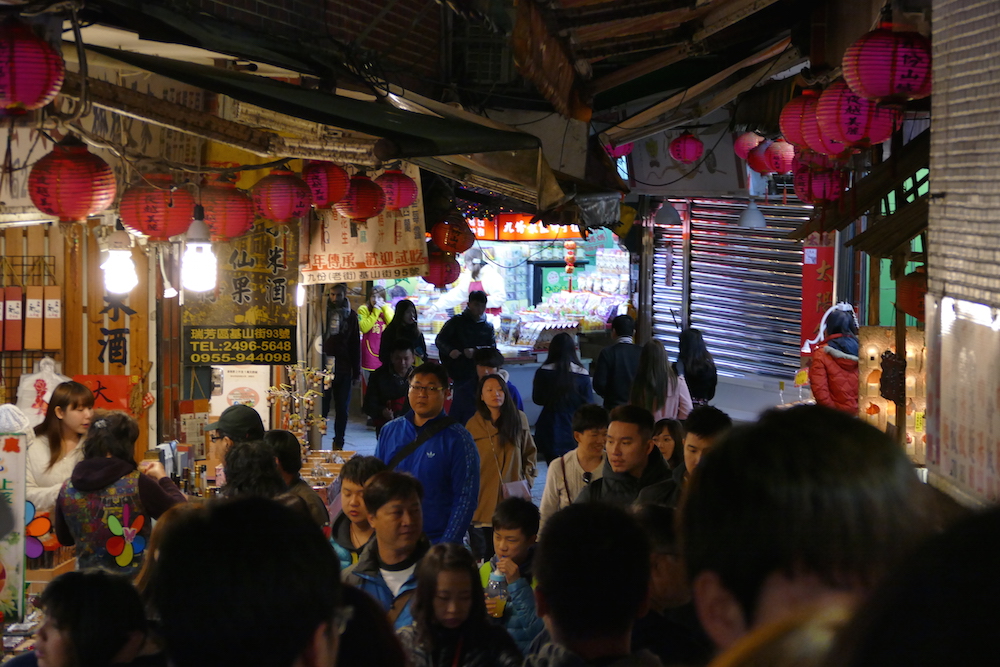 100%観光地の九份の路地。狭い道の両脇には土産物屋と食事処が並び、観光客がぶつかりあいながら歩いている。カメラを持っていなかったら、すぐに帰りたくなっていたかも……(FZ1000)
