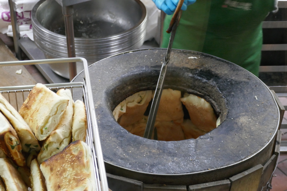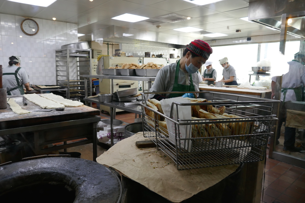 台湾では調理場が入ってすぐにあることが多かった。「阜杭豆漿」も“見せる調理場”的なガラス張りの部屋で作っていた(TX1)