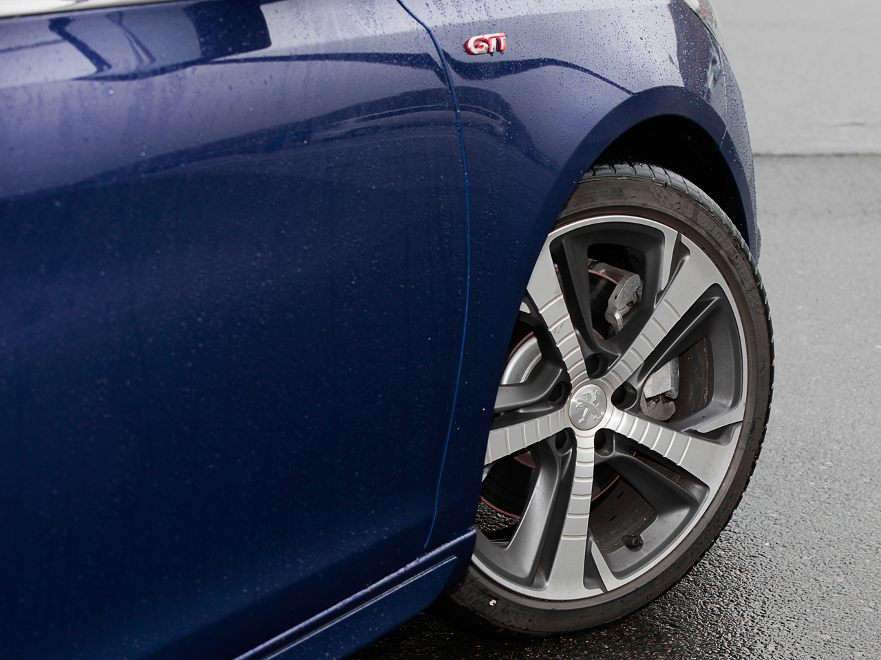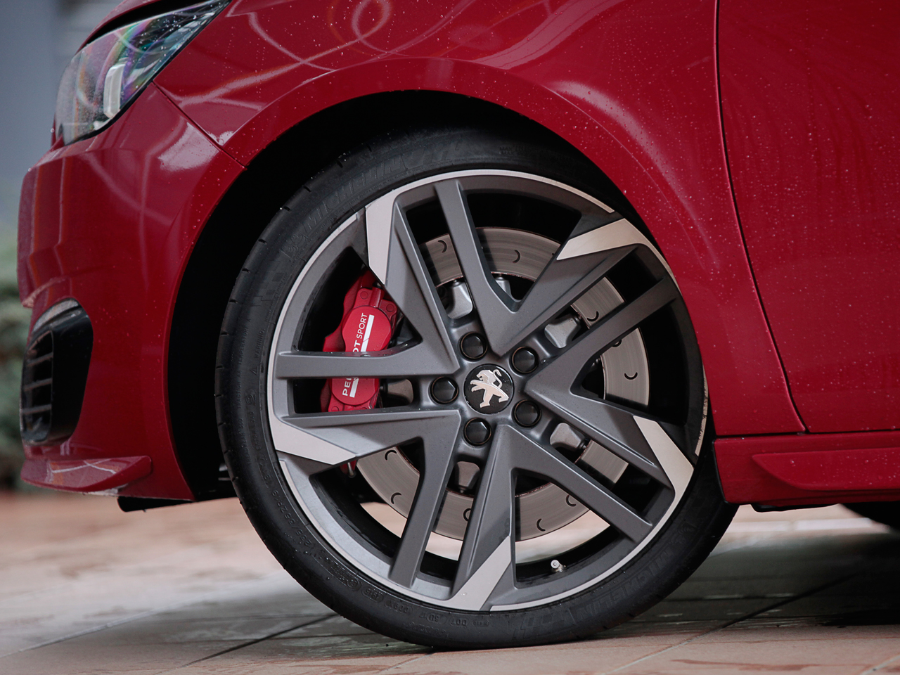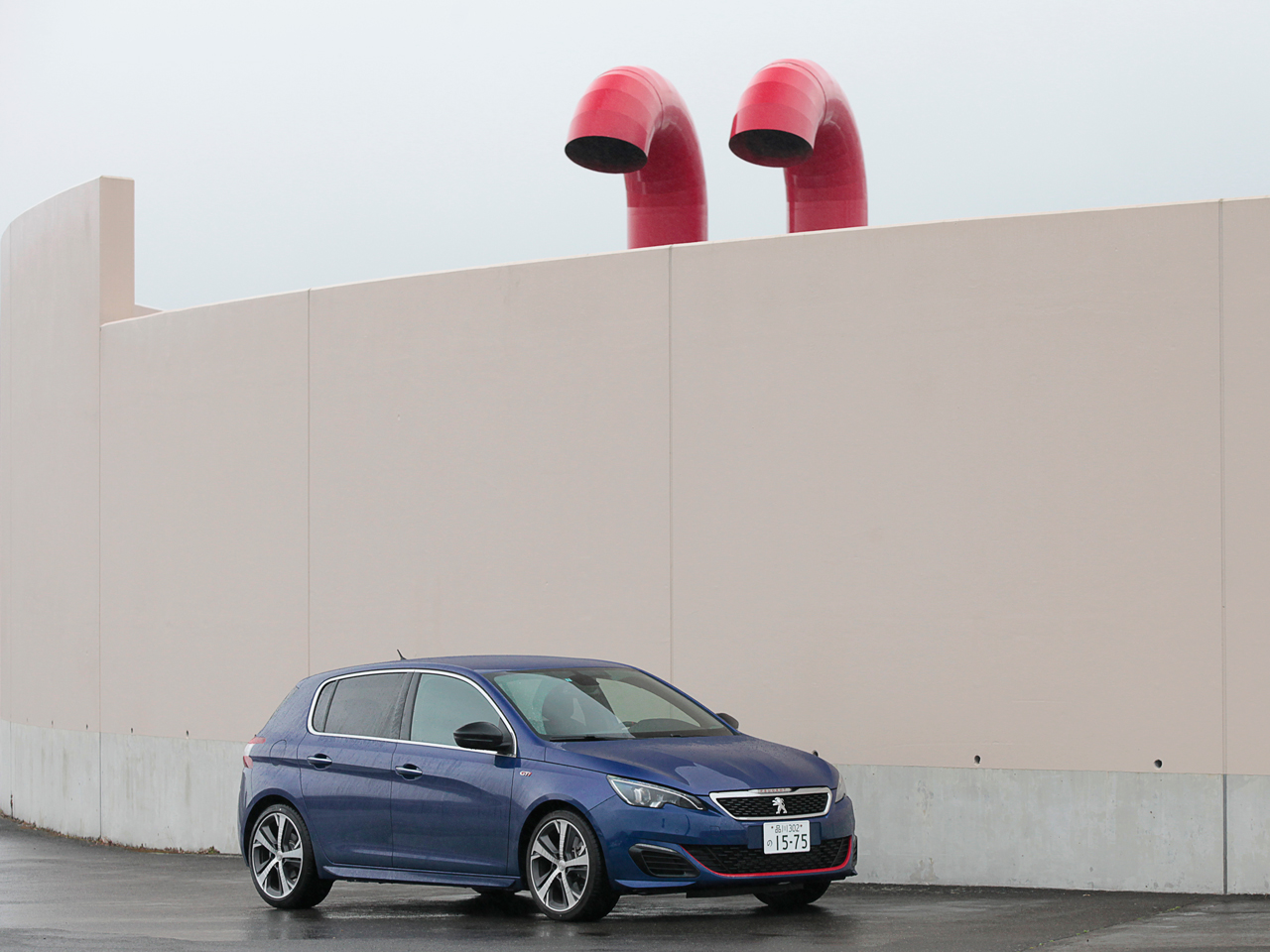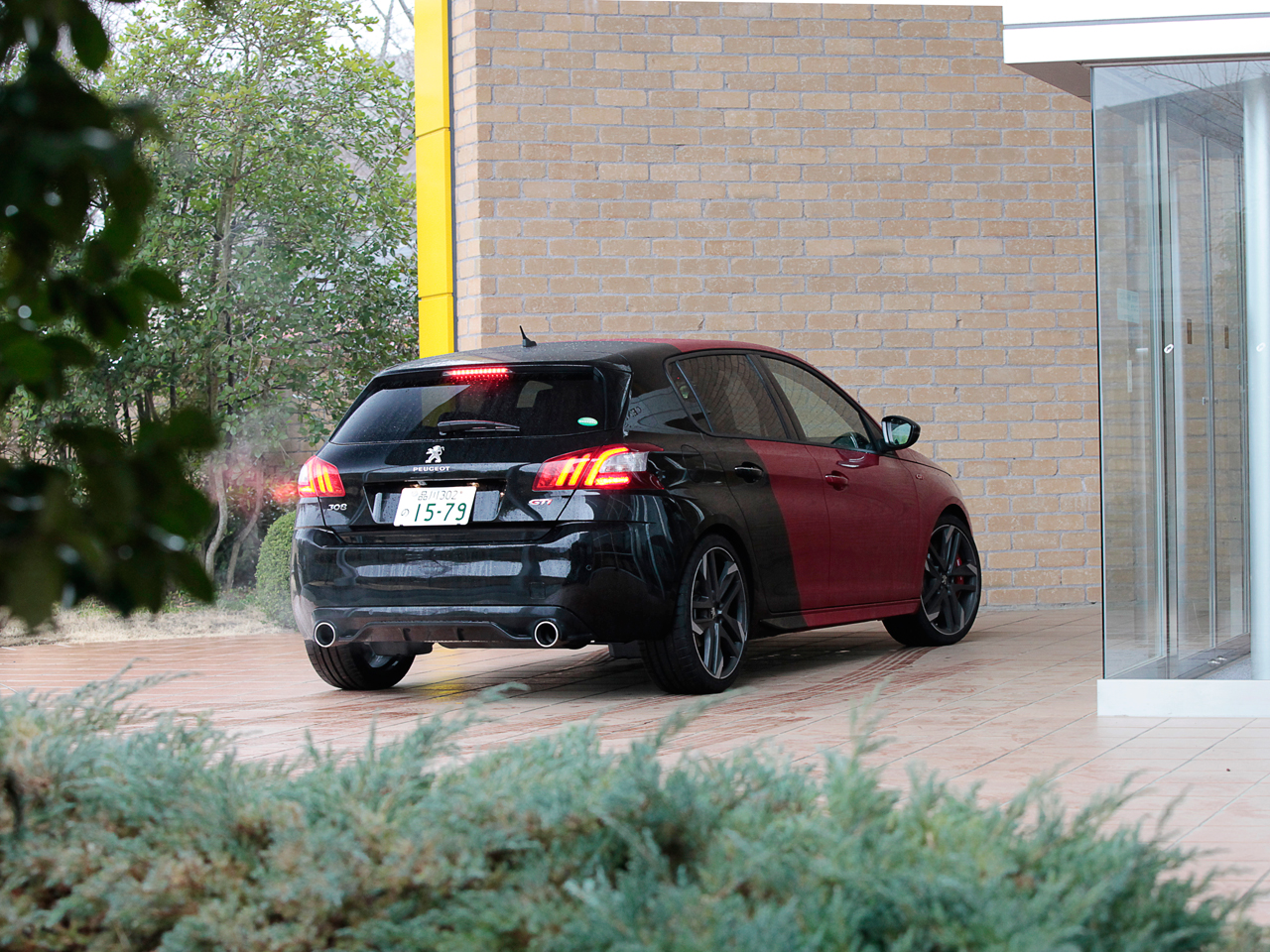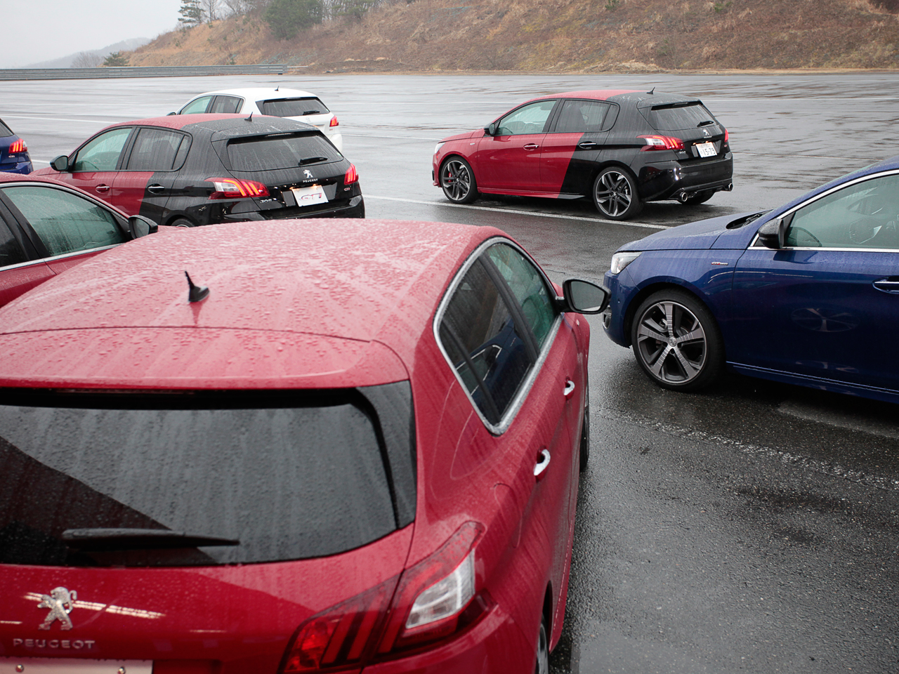 試乗した日はあいにくの天候。雨に濡れたプジョー車の中でひと際異彩を放っていたのが“クープ・フランシュ”こと赤と黒のツートーンにペイントされた308GTiでした。