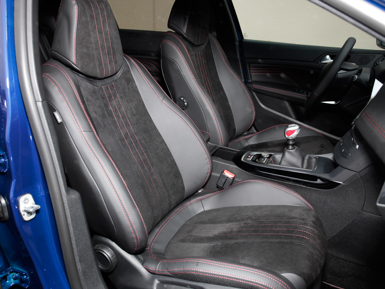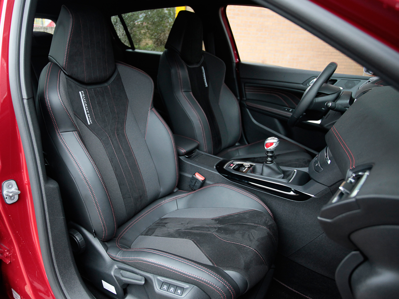 試乗車は、派手なカラーが“うれし恥ずかし”のクープ・フランシュ仕様。ドアを開けて運転席に座れば、本格的なバケットシートがやんわり背中を抱いてくれます。バックスキンとテップレザーをあしらった贅沢なシートで、バックレストには“PEUGEOT SPORT”の文字が入れられます。
