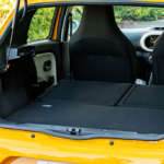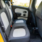 トゥインゴの全長は3645mmと軽自動車よりひと回り大きい程度で、デザインはどこかかわいらしいもの。さらに、小さな車体に最大限の居住空間を持たせようと、リアのラゲッジスペース下にエンジンを搭載し、リアタイヤで駆動するという独特のレイアウトを採用する。その効果か、小さいボディサイズでもフロントシートの足下にはゆとりがあるし、リアシートはオトナが無理なく座れる空間を確保している。