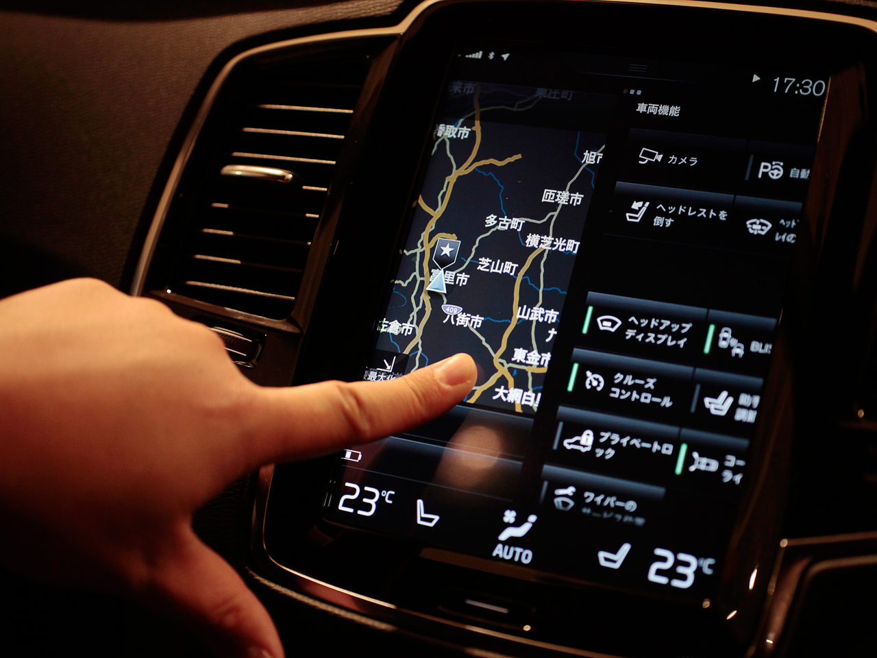 XC90は、ミリ波レーダーと高解像度カメラで自車の周辺を監視。他車、歩行者やサイクリストとぶつかる危険性があるとクルマが判断した場合、警告を発し、場合よっては自動でブレーキをかけて衝突を回避、または被害を軽減してくれます。この安全装備“シティセーフティ”を、XC90は全グレードが標準で装備します。