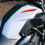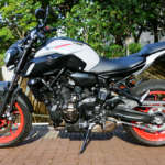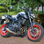 MT-09との違いは着座位置で、タンクが短く前の方に座るMT-09に対し、MT-07はタンクが少し長めで、座る位置も一般的なロードスポーツに慣れた人に馴染みやすい位置となります。