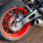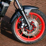 今回試乗したのは、2019年に追加された“バーミリオン”と呼ばれる色鮮やかなホイールを装備したモデル。ただし、ライトのデザインなどはMT-09ほど先鋭的ではないため、オトナが乗っても目立ちすぎない安心感があります。