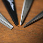 合わせて、やはり「錆びにくい」こと。表面だけの錆はぬぐえば消えますが、金属の内側まで食い込む錆は、切れ味を極端に鈍らせます。素材は、やはり錆びに強いステンレスがメインになります。