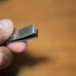 形状は細すぎないセミ先鋭刃で、片刃の全面にセレーション(波刃)がついています。切れ味は、太いPEはもちろん、ふにゃりと逃げていく細いPEも簡単にスパッと切れます。