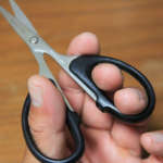持ち手が大きくて、一方の穴に指を2本入れて持つことができます。たとえばフライやテンカラの毛鉤を巻いたりするような、細かい作業で手元が安定するので、とても作業がしやすいのです。