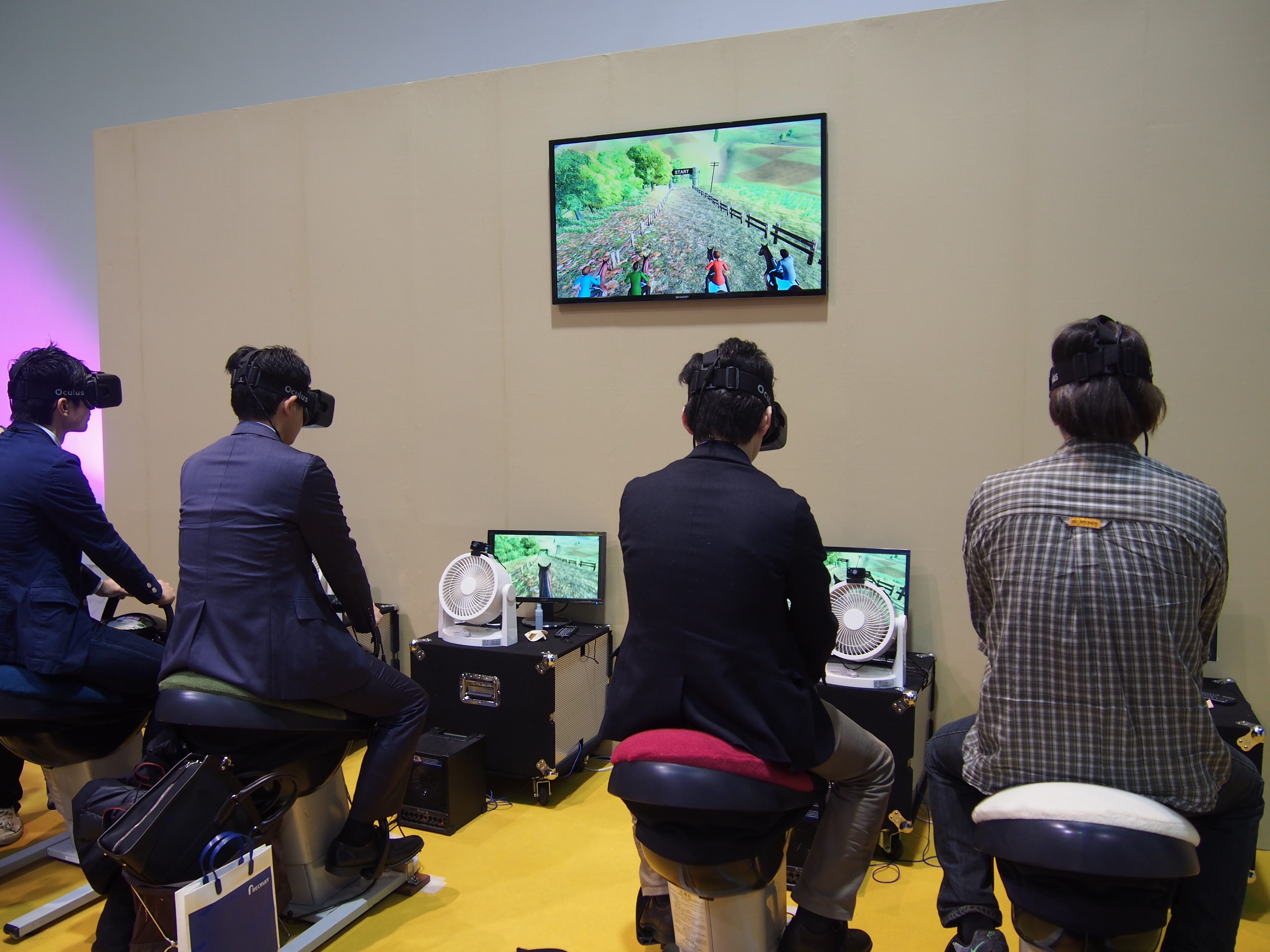 見慣れた健康器具がVRの新たな体験に繋がるユニークな発想が魅力。実際にプレイしている人たちの様子を見ていると、こういうのがゲームセンターなどにあると楽しそうだなと感じました。