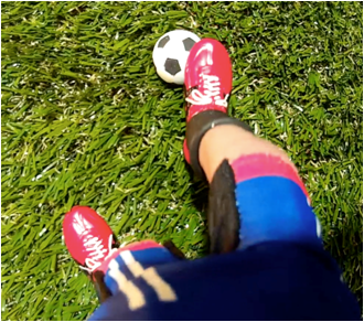 片手にユニフォームと靴をはめ、手首にカメラを装着することで、手元の映像をヘッドマウントディスプレイで見ながらサッカーをプレイできます。