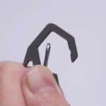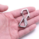 この部分のカエシ(返し)がないのが好ましい感じがします。ロッククライミングやラペリングで使用される本来のカラビナは、閉じているか開いているかで強度が数倍異なります。それはカエシの部分で荷重の一部を受けるからなのですが、ファッションカラビナではそこまでの強度は不要でしょう。カエシがないことで、ベルトループや紐類からの離脱を素早く確実にできます。汎用のカラビナはよく引っかかってあたふたしますよね。