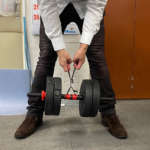 ちょっと引っ掛けてみました。16kg。持ち上げても変形しません。指が痛い。なかなかの耐荷重。基本的に、重量物には使わないようにということですので、真似はしないでくださいね。数キロ以内の使用が推奨です。