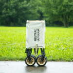 太めのタイヤは安心感が違います。荷物多めで山でのバーベキューが多い人が手にしたいキャリーワゴンと言えます。オプションでソフトクーラーを用意しているのもBBQ向きですね。