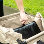 また、かご部分の生地は面ファスナーでとめられているので、取り外して中性洗剤で洗えるんです。雨上がりに使って泥はねがついたときも安心です。