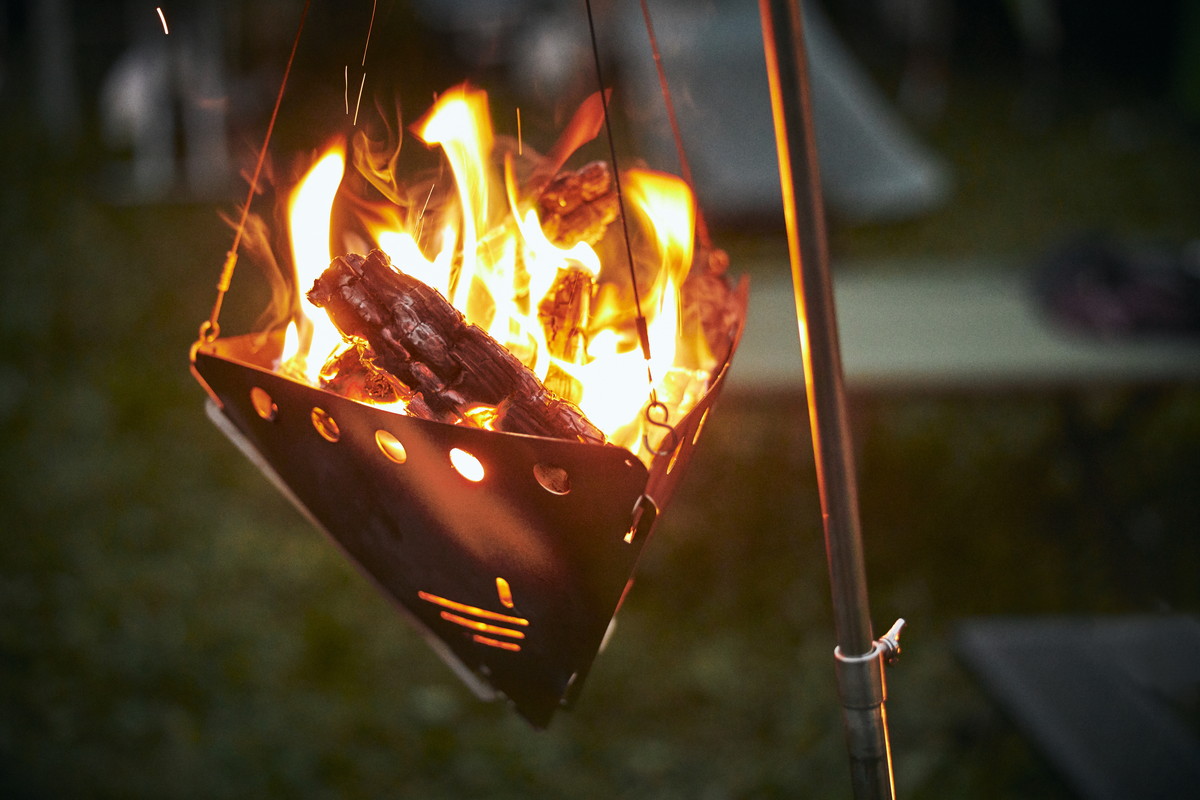 「BONFIRE STAND 2.0」は、東京下町の金属加工工場とタッグを組んだプロジェクト第1弾となる製品。ジャンルにとらわれないモノ作りの会社だからでしょう、業界初の吊り下げて使う焚き火台として各方面で注目されています。