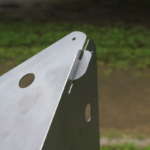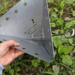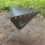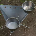 三角錐の焚き火台なので、フチを利用して小型クッカーや鉄板を載せられます。