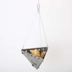 本邦初の吊せる焚き火台。地面に置くのとは違い、時折ゆらゆら。下〜横から眺める炎はかがり火に似ていますが、焚き火台自体が小さく揺れるのが不思議です。