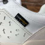 アッパーはテフロン加工のコーデュラエコキャンバスを採用し、優れた耐久性と撥水性、防汚性を実現。さらにトウとヒール部分には防水加工のスエードでさらに耐久性を高めています。