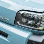 エクステリアデザインのテイストは、ともに無骨さを強調したアウトドアギア感覚の強いものだが、ヘッドライト形状はハスラーが“丸目”なのに対し、タフトは“角型”と路線は明確に異なる。ボンネット周辺の形状も、丸みを帯びたハスラーに対し、タフトは徹底して直線基調となっている。