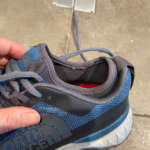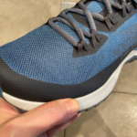 アッパーは通気性の高いメッシュ素材をメインに、サイドをTPUコーティングで補強しています。