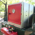 トビラに温度計が付いているので、オーブン料理もスモークも温度管理をしやすい! トビラを開くとすぐに温度が落ちるので、目指す温度より10℃ほど高めに熱しておくのがポイントです。