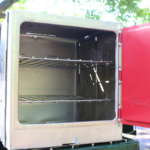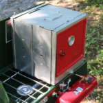 ただし、使用中のオーブンはかなり熱を持つので、燃料タンクをバーナーの外側に配置しているコールマン「413Hパワーハウスツーバーナー」ほか、ガソリンツーバーナーでしか使えません。コールマンのLPガスバーナーは燃料に影響が出かねないので使えないのが残念です。また、自宅のコンロでも使えそうですが、センサーが働いて勝手に消えるものが多く、こちらも不向きと言えるでしょう。