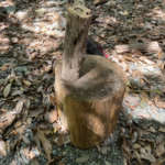 このように、空振りした場合、薪割り台が刃物の進行方向から自分を守ってくれます。ちなみに、この刃物の角度は悪い見本です。刃物は薪割り台に対して水平に振り下ろすようにしましょう!